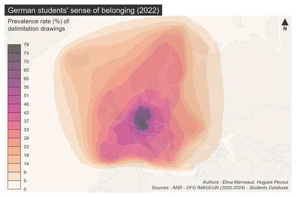 Figure 10: Aggregate Map of the Sense of Belonging to a Territory, According to Students in Germany, Resulting from the Combination of 779 Regions Drawn by 568 Students