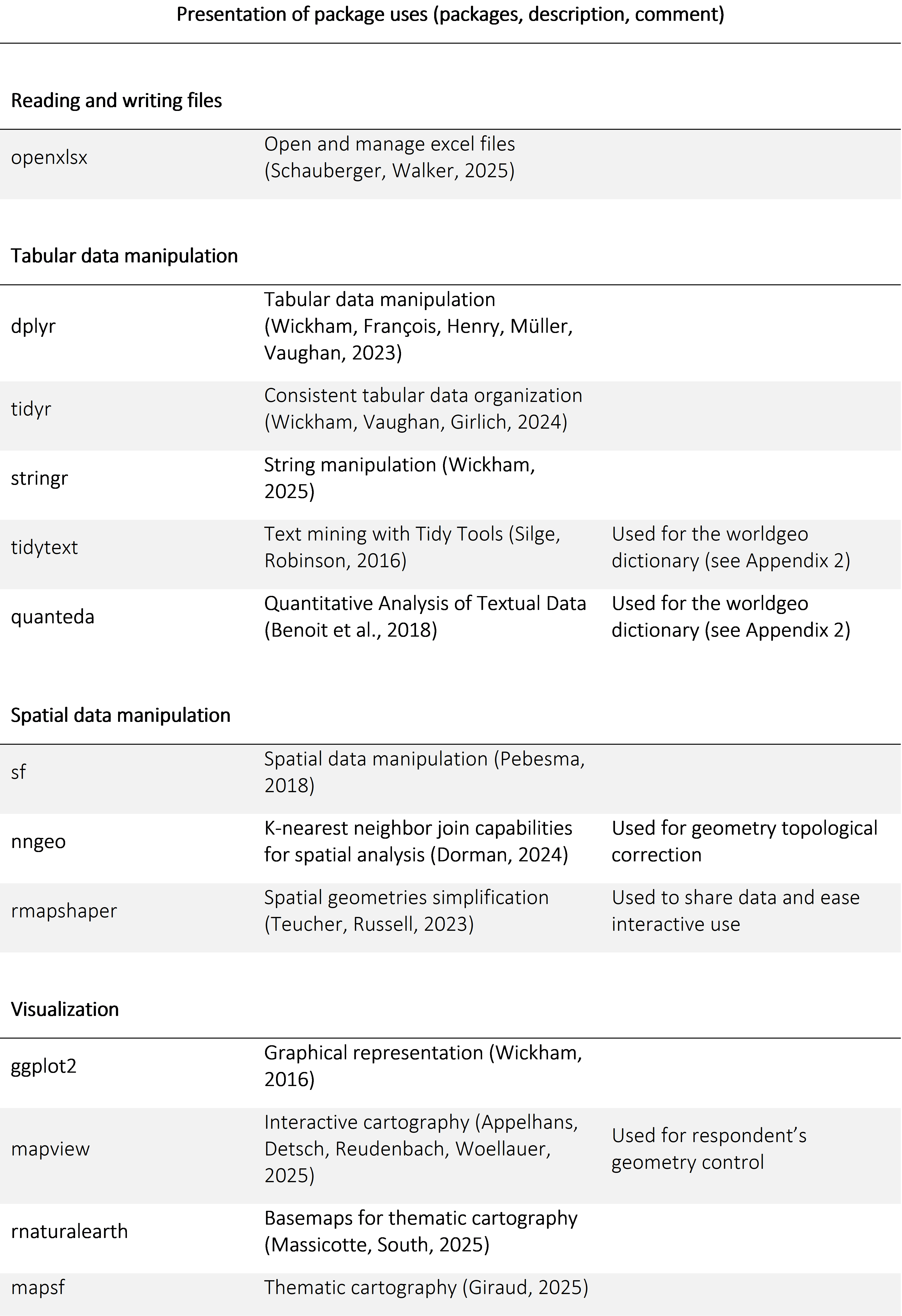 Table 4: Presentation of packages used