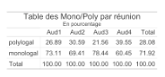 Alors que les trois premières réunions comportent seulement, chronologiquement, 27, 31 et 22 % d’échanges polylogaux, conformément à la tendance générale, la réunion 4 en présente presque 40% (voir tab. 3).