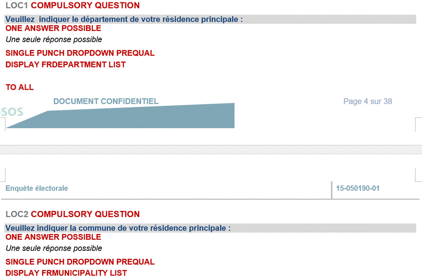 Figure 6 : Question LOC1 et LOC2 issu de questionnaire de vague 1 de ENEF2017