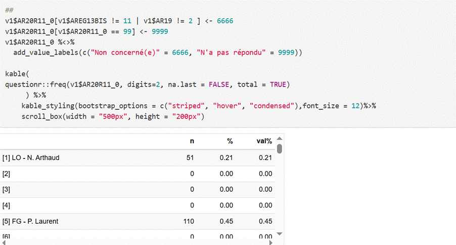 Cet extrait est issu d’un script écrit sur markdown ayant pour but de nettoyer et documenter la première vague de l’ENEF 2017.