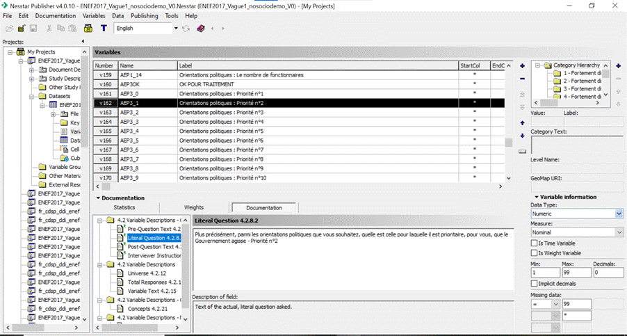 Comme indiqué précédemment, nous utilisons un logiciel Nesstar pour documenter chaque variable de la base de données.