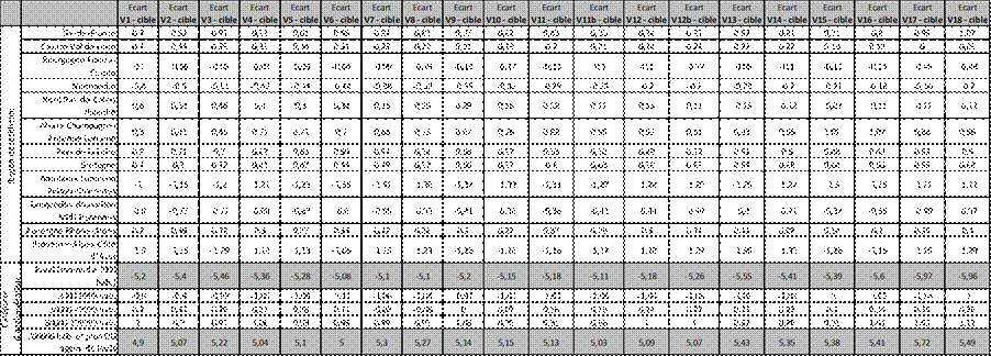Les tableaux 2 et 3 présentent l’évolution des structures géographiques et sociodémographiques des panélistes “purs” de la vague 1 à la vague 18. En grisé sont représentés les écarts supérieurs ou égaux à 5 en valeur absolue entre la proportion parmi les panélistes “purs” dans la vague considérée et la proportion dans la cible telle que fournie par les données de recensement.